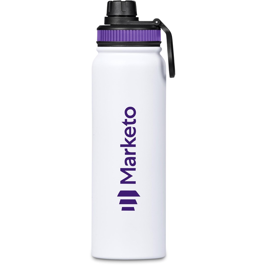 The bottle base is made from strong and durable BPA-free stainless steel with a white powder-coated finish. It has a double-wall vacuum construction, which ensures that liquids inside stay hot or cold for hours.