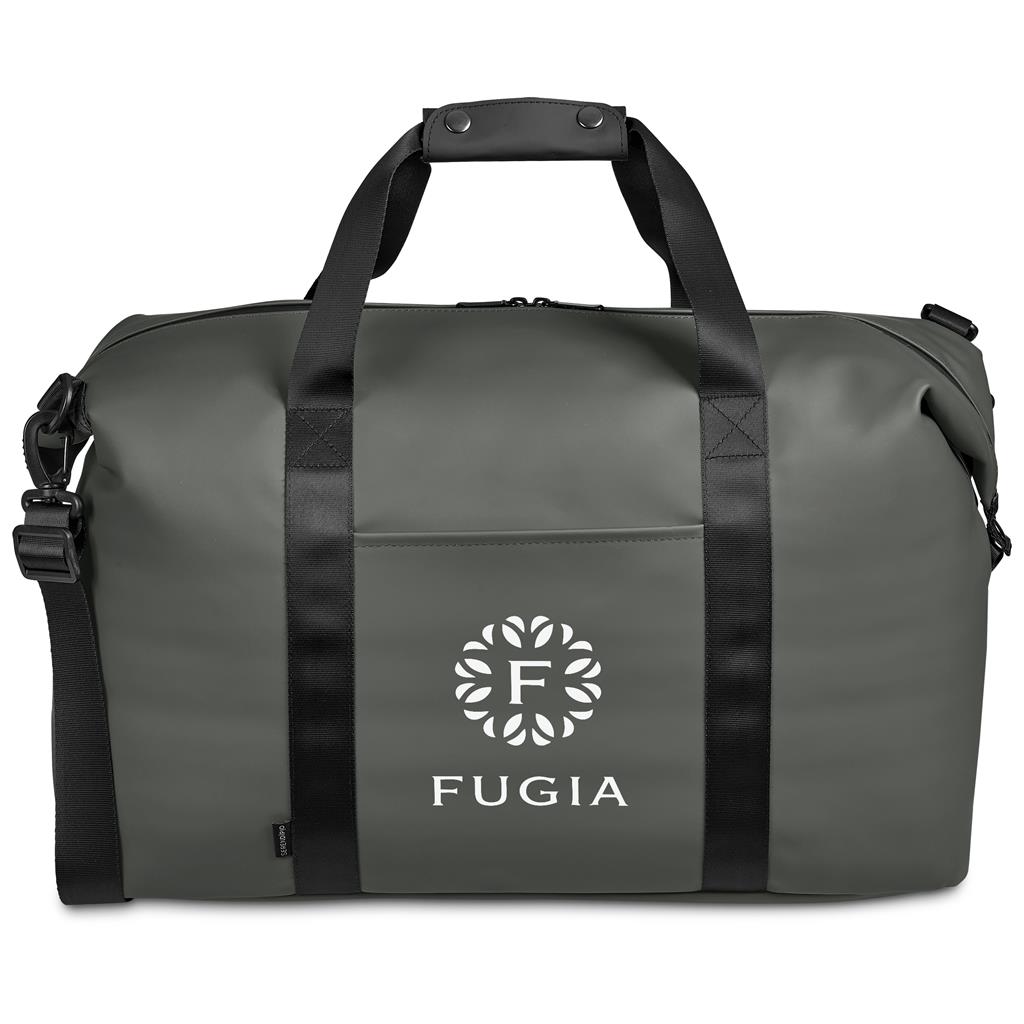 This spacious and durable weekend bag is designed to accommodate all your essentials, including clothing, shoes, and toiletries, with ease. Made from waterproof fabric, it offers reliable protection against any weather conditions. The stylish printed lining adds a contemporary touch of sophistication, making this bag both practical and elegant for your travels.